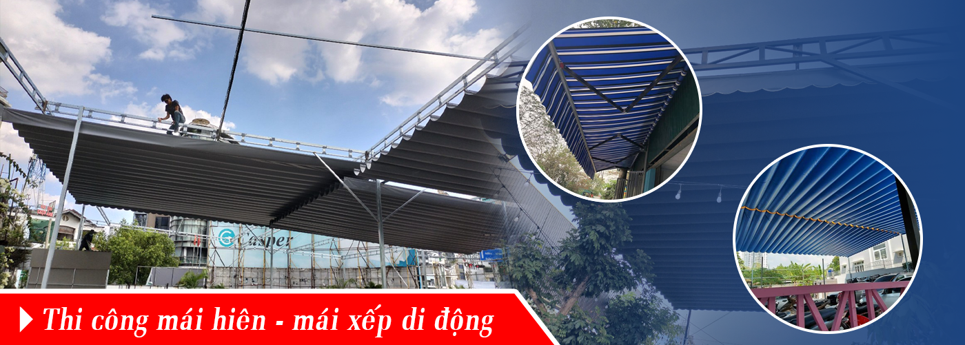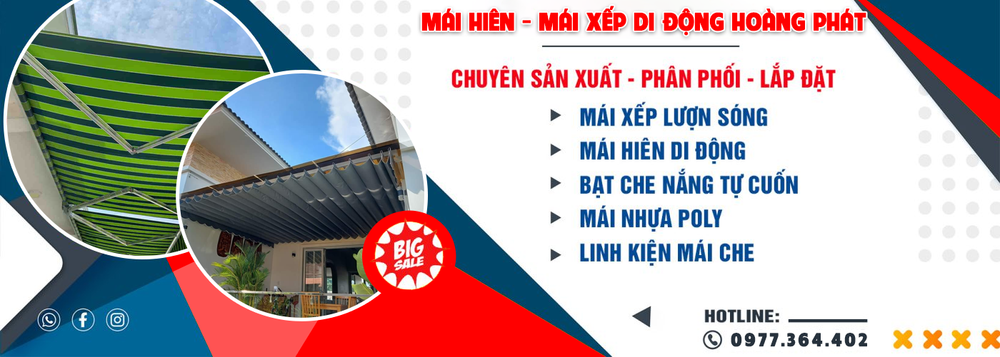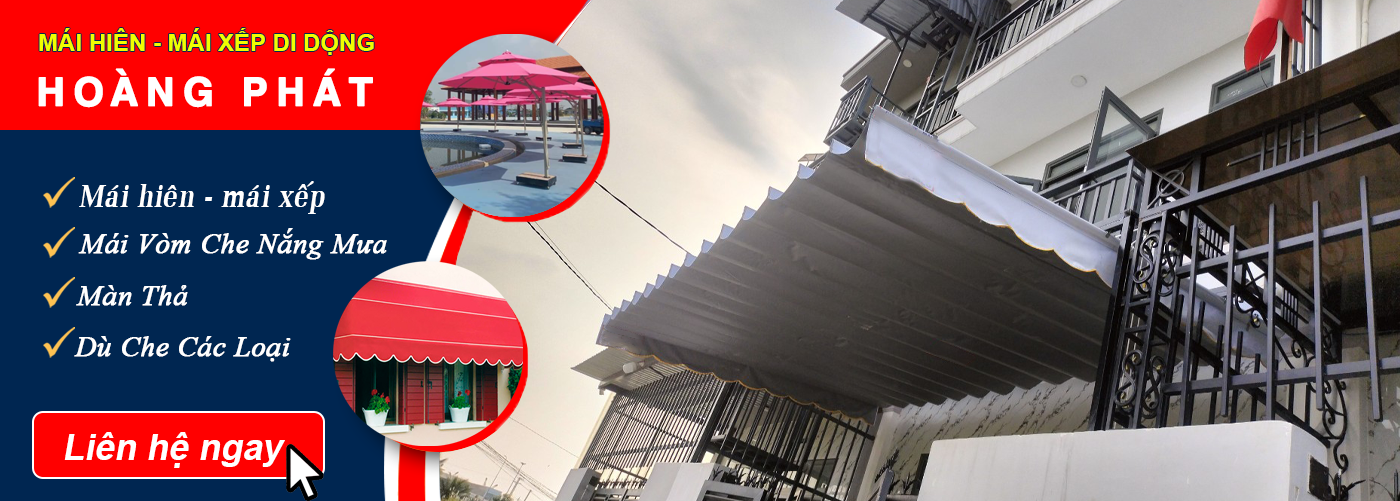 Mái Hiên – Mái Xếp Di Động Hoàng Phát chuyên tư vấn, thiết kế, thi công mái hiên, mái xếp di động, mái vòm, màn thả, dù che các loại … Ngoài ra chúng tôi còn cung cấp linh kiện, phụ kiện mái hiên mái xếp,… Với nhiều mẫu mã đa đạng, đội ngũ chuyên nghiệp có nhiều năm kinh nghiệm trong nghề với tay nghề cao thi công nhanh chóng, giá cả phải chăng – cam kết giá tốt nhất cho khách hàng. Bạn sẽ yên tâm khi chính sách bảo hành của chúng tôi luôn minh bạch, bảo hành lâu dài cho từng loại sản phẩm. Chắc chắn bạn sẽ hài lòng về sản phẩm và dịch vụ của chúng tôi.